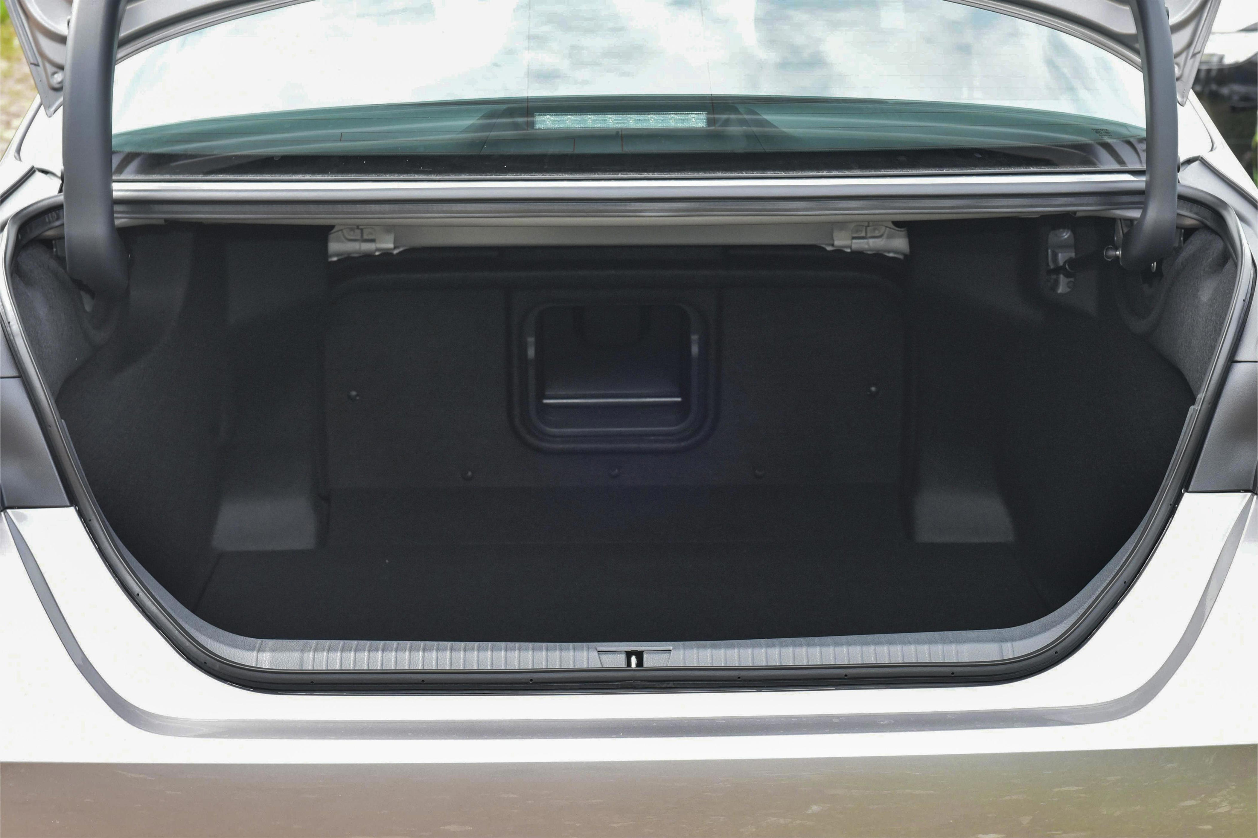 空间发达上,两款混动车型的轴距均为 2870mm,车身长宽高也基本一致,约为 4990/1850/1450mm,是以车内乘坐空间莫得显著各异。我身边一位身高 1 米 8 的一又友,非论是坐在 2.0L 混动如故 2.5L 混动车型的后排,腿部齐能留出约两拳的距离,头部还有两指傍边的余量,日常乘坐时跷二郎腿透彻莫得问题。储物空间的联想也疏浚,前排扶手箱的深度足以容纳两瓶矿泉水,门板储物格能装下大尺寸保温杯,后排中央扶手带有杯架,标的盘左侧还设有隐藏式卡片槽,方便舍弃高速卡等物品,日常使用很方便。