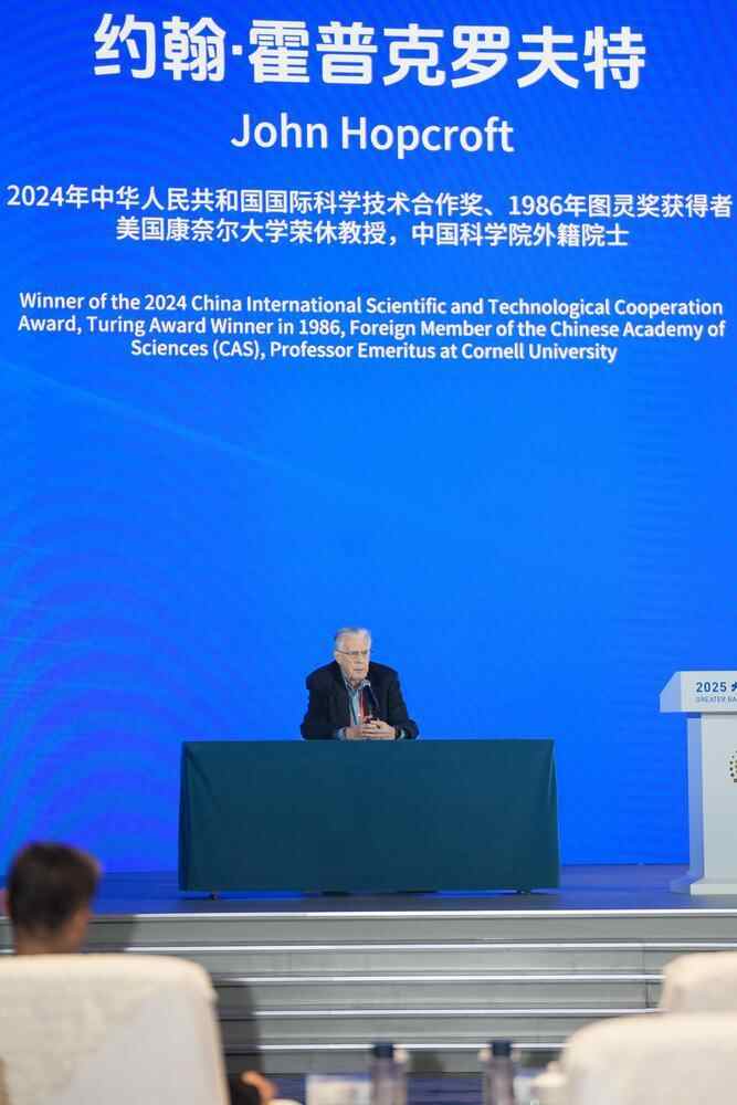 发布日期:2025-12-17 11:19 点击次数:9312月7日,2025大湾区科学论坛开幕式在广州南沙国外会展中心举行。在主论坛演讲中,1986年图灵奖赢得者、中国科学院外籍院士约翰·霍普克罗夫特对信息时间的训导共享了我方的不雅点。他示意,即使在新期间时间,训导的实质还是是要让学生学习他们可爱的东西。