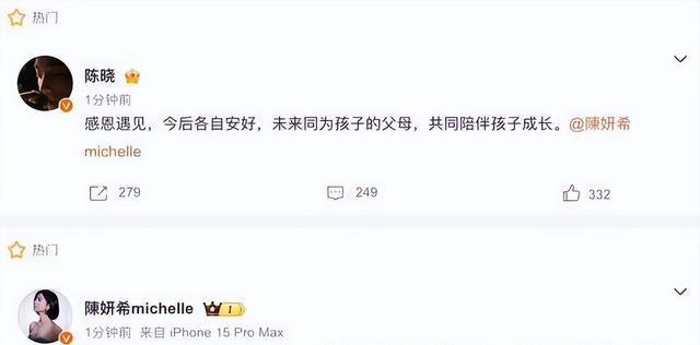 本年2月,陈晓陈妍希通过酬酢媒体官宣分裂,他们互谈安好,情愿会无间以父母的身份共同奉陪孩子成长。
