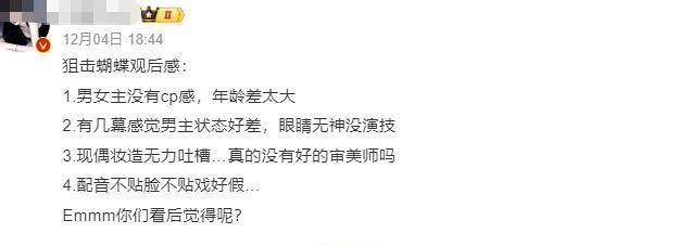 《狙击蝴蝶》开播后的进展只可算是差强东谈看法,热度虽有但实在称不上爆火,跟冲破记载的《大交易东谈主》就更弗成比了。