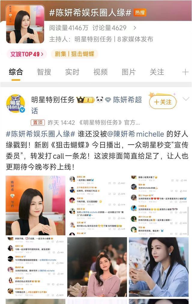 陈妍希的东谈主脉在宣发历程中被体现得大书特书,说是泰半个文娱圈齐被她拉来作念宣发齐不为过。