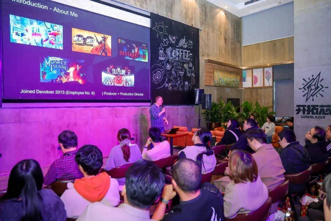 就像前边提到的,它的前半步调是Devolver的自我先容,包括公司的历史、刊行架构、过往案例以及一些理念;后半程则是开拓芯过甚投资团队作念训戒共享。勾引者团队们坐不才面凝听,再提议一些十分径直的问题,比如“你们会不会拿勾引者的IP版权”。