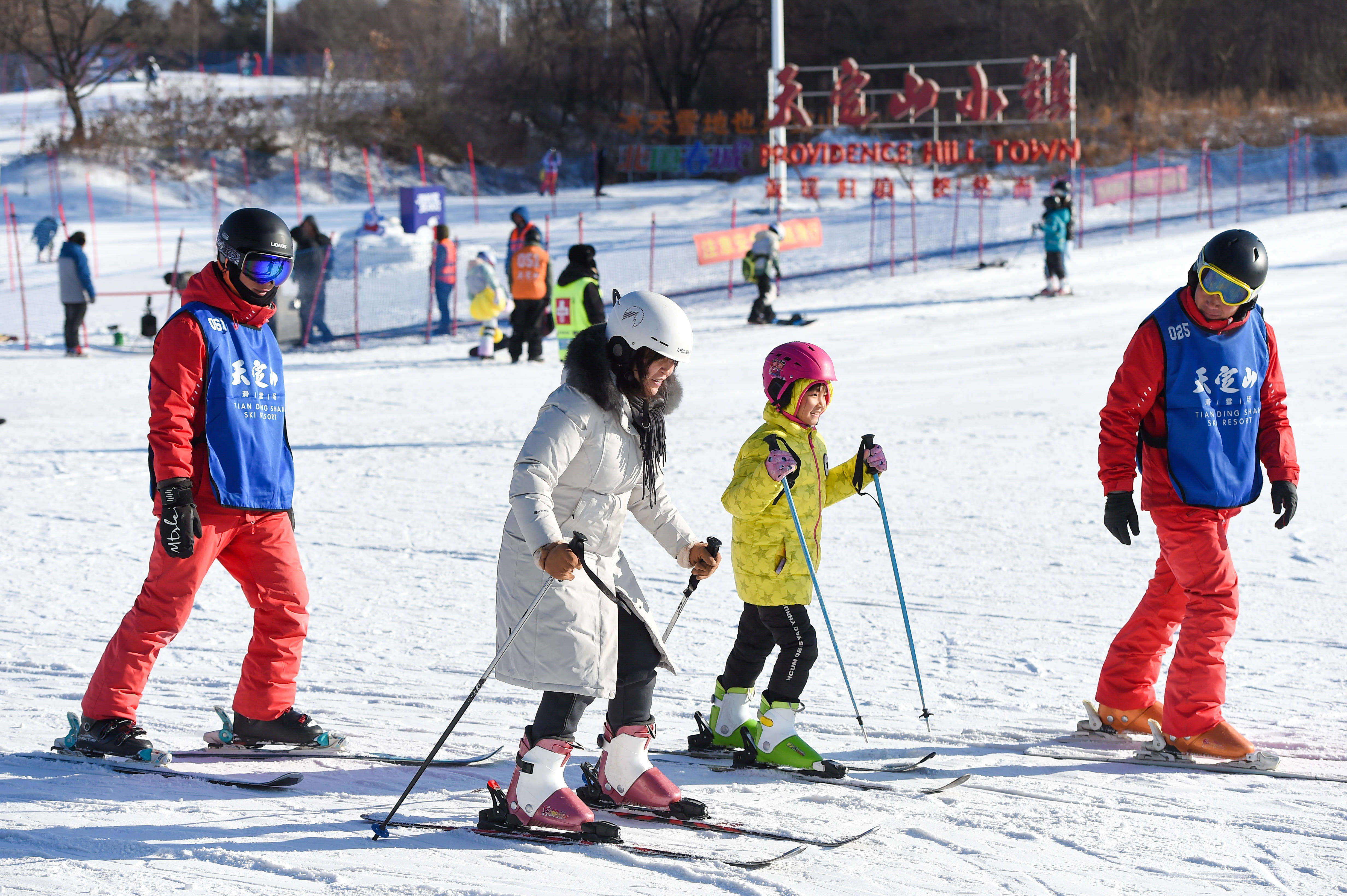 12月3日,在长春市天定山滑雪场,学生和家长在讲授的相易下熟识滑雪。新华社记者 张楠 摄今天是“雪假”的终末一天