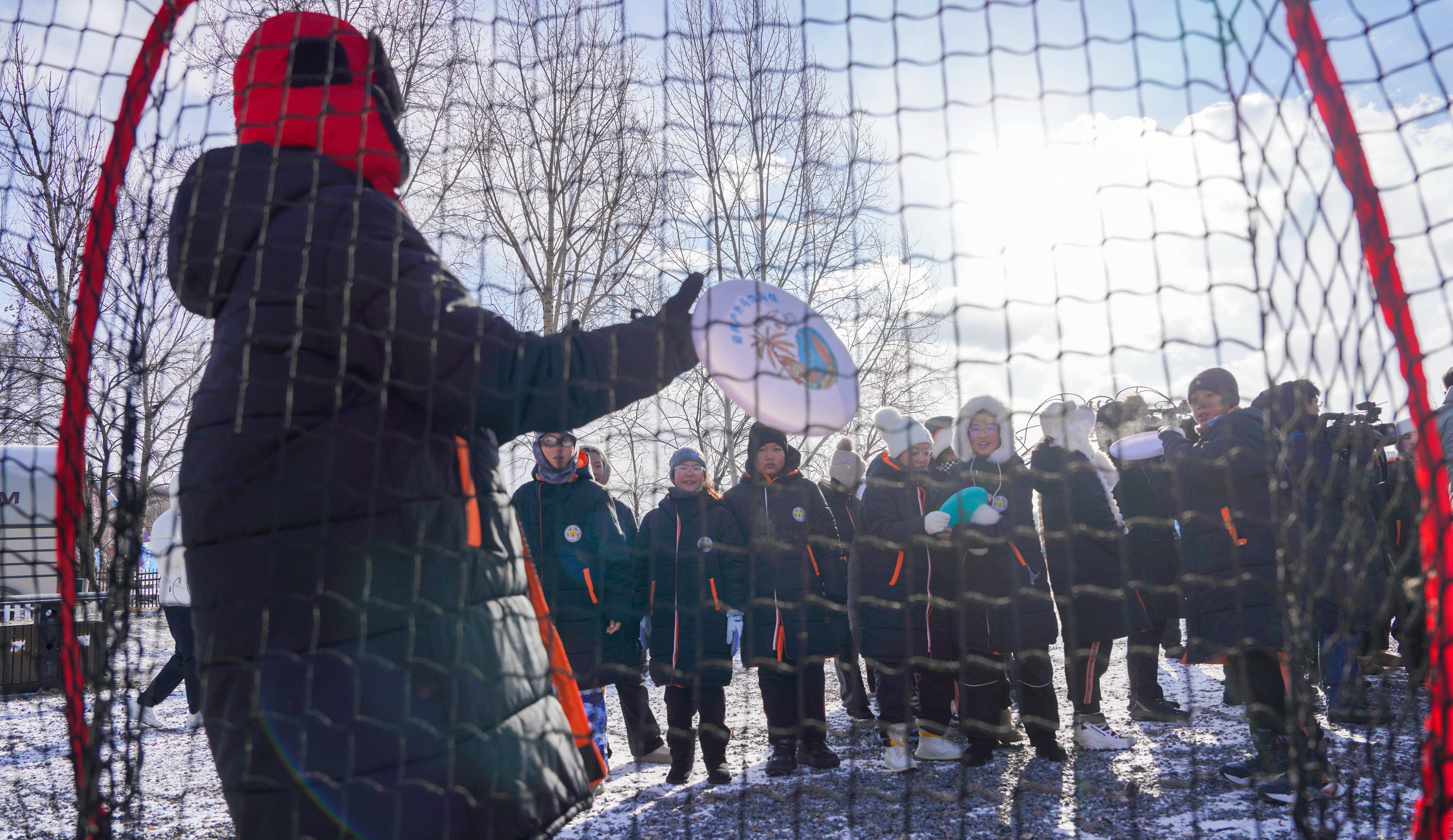 12月3日,吉林市第一履行小学学生在吉林市纳好意思山谷度假区体验雪地飞盘。新华社记者 颜麟蕴 摄“雪假”本领