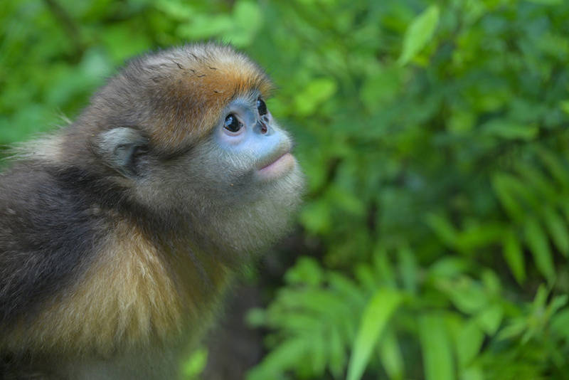 贵州梵净山国度级当然保护区黔金丝猴推断中心的黔金丝猴。