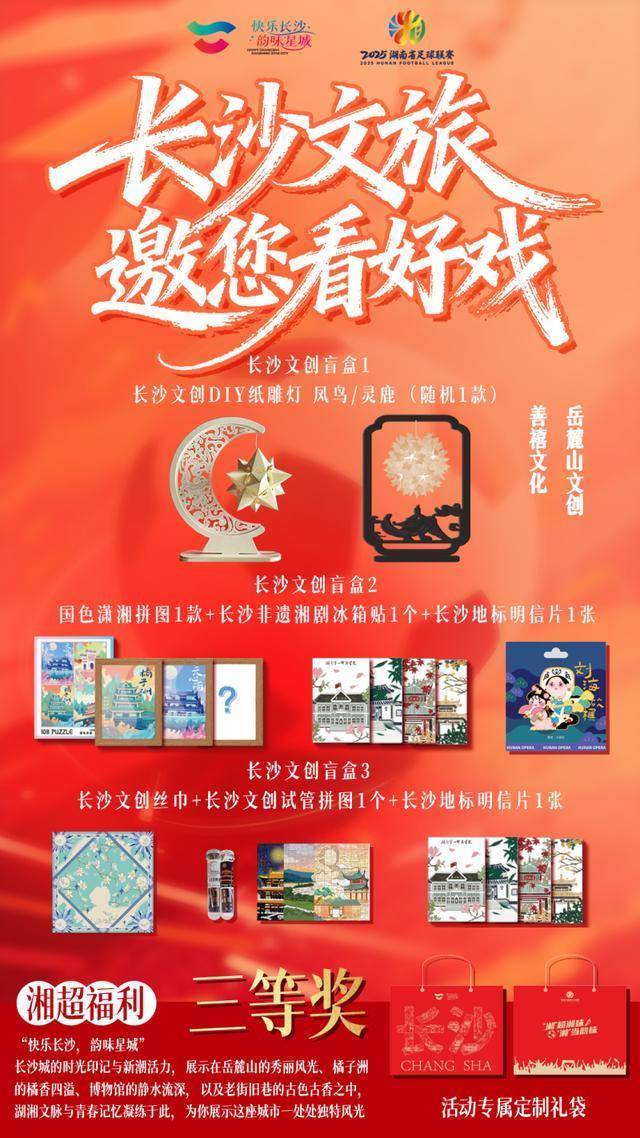 既有湘超现场扫码抽奖非遗文创奖品径直送,又有长沙演艺新空间文旅花消券径直领,更有《寻长沙》文博风物艺术幻境献艺免费径直看,这次长沙文旅福利号称“文旅体交融盛宴”。除已开启的首场抽奖外,后续还有两场抽奖大秀直播视频种子,有幸抢到湘超门票的球迷一又友可不要错过。从非遗文创到演艺盛宴,长沙正以实着实在的文旅福利,让“景观长沙・韵味星城”的魔力垂手而得。