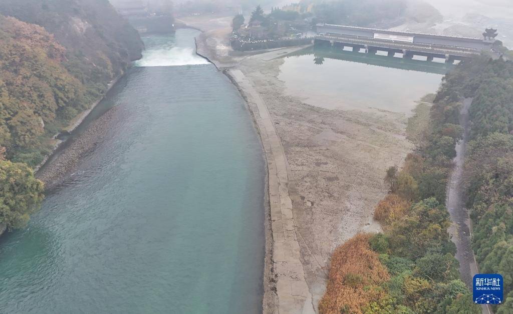 11月30日拍摄的齐江堰鱼嘴外江闸。