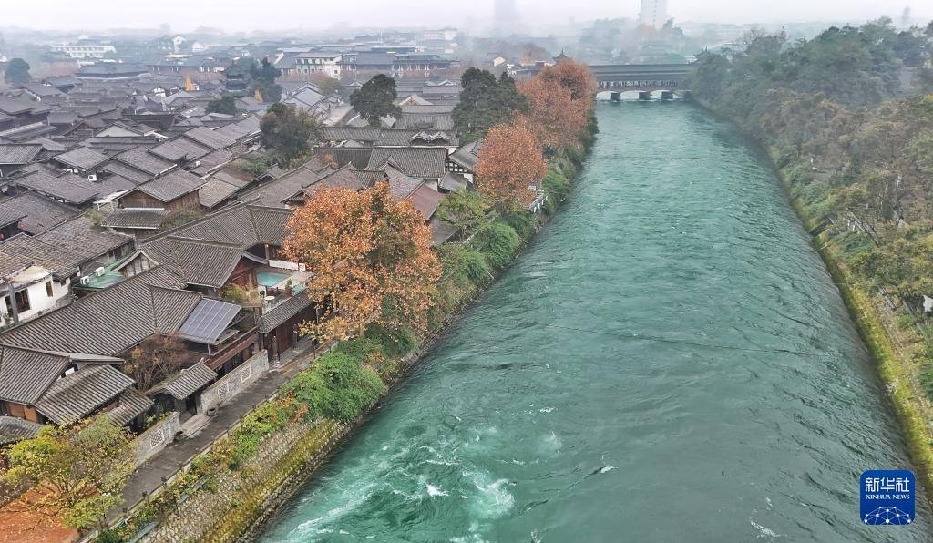 图为内江与西街(无东谈主机像片,12月6日摄)。西街位于齐江堰宝瓶口以南,与伏龙不雅隔江相望,是一条有着几百年历史的古街。