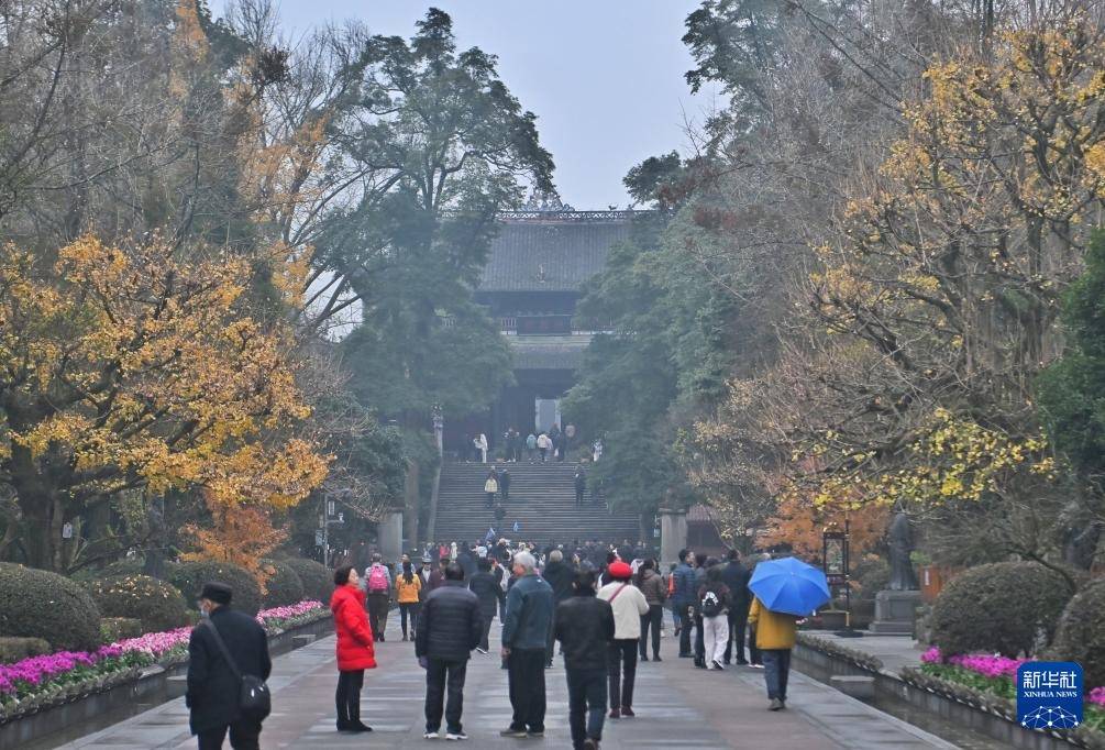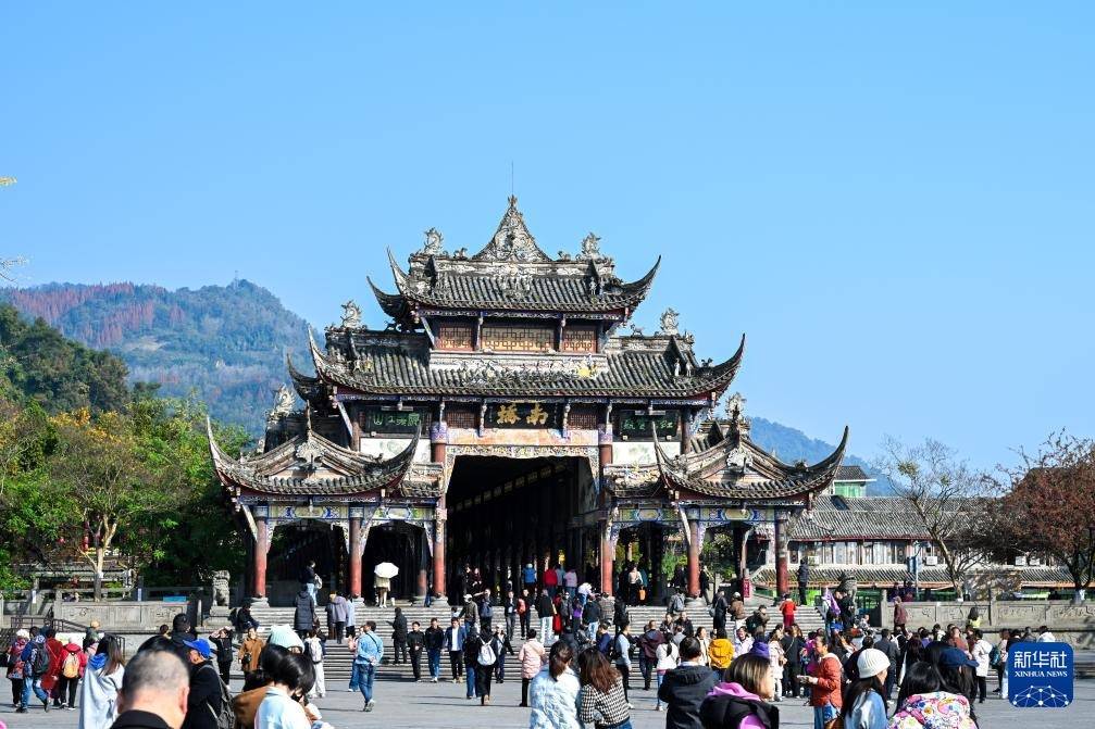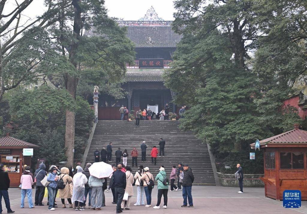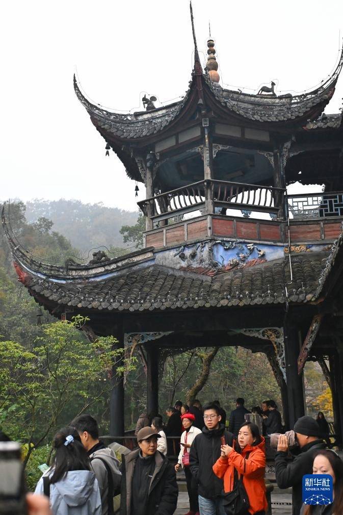 12月6日,旅客在伏龙不雅前游玩。伏龙不雅前身名叫“范贤馆”,始建于西晋末年。北宋初年,东谈主民惦念治水英杰李冰父子,大兴土木,扩建殿宇,是历代祭祀李冰治水的主祭之地。