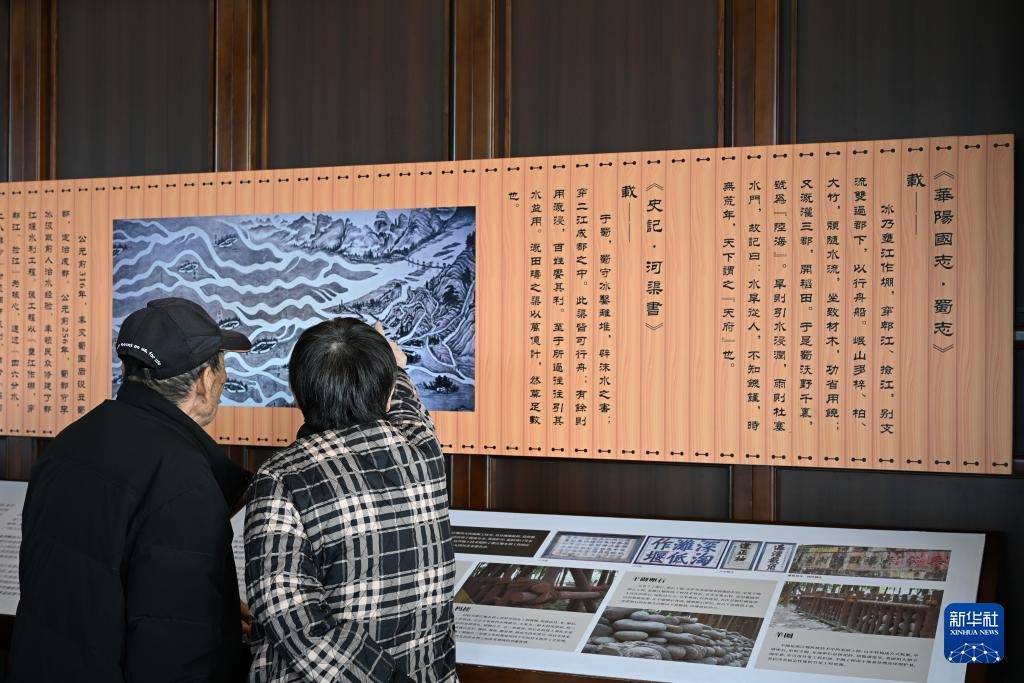 11月30日,旅客在齐江堰景区秦堰楼里了解齐江堰水利工程。