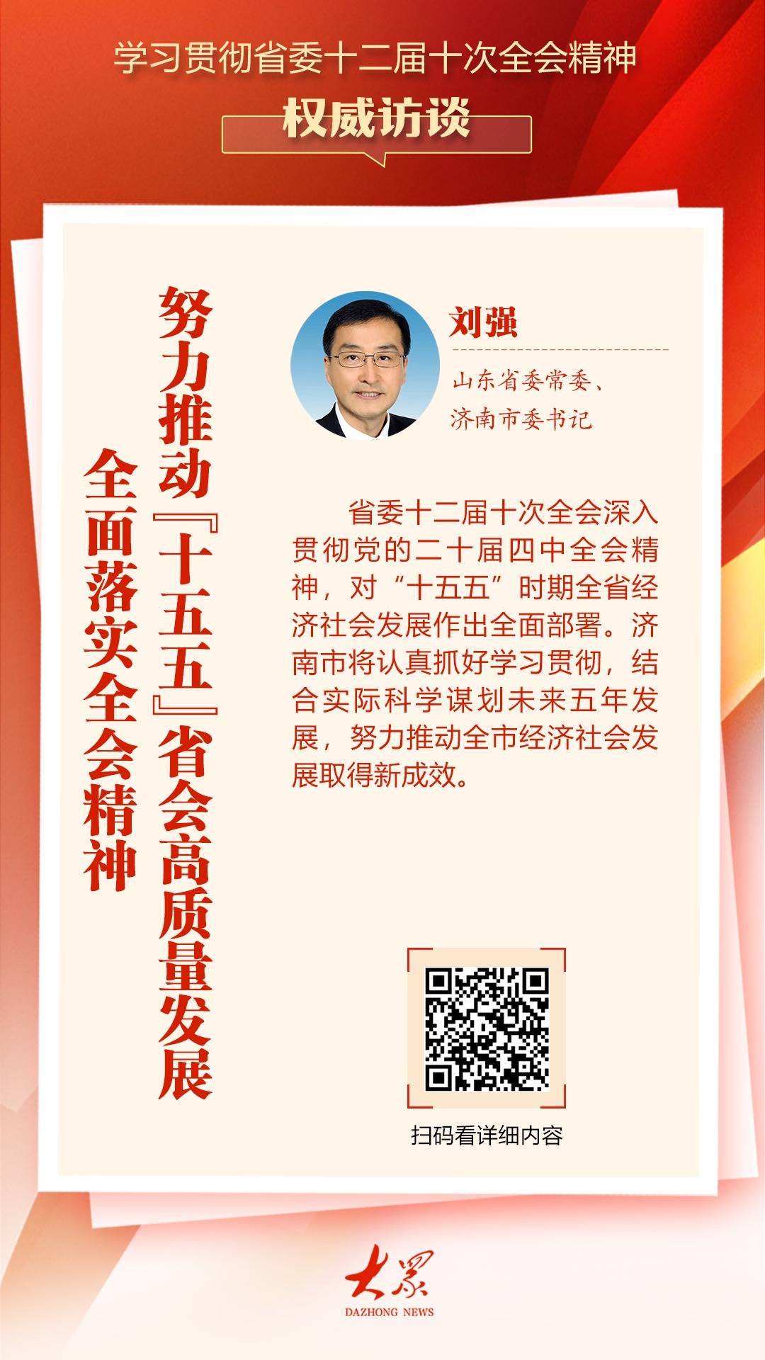 省委十二届十次全会深切贯彻党的二十届四中全会精神,对“十五五”时辰全省经济社会发展作念出全面部署。济南市将肃肃持勤学习贯彻,汇集实质科学计较改日五年发展,奋勉股东全市经济社会发展赢得腾达效。