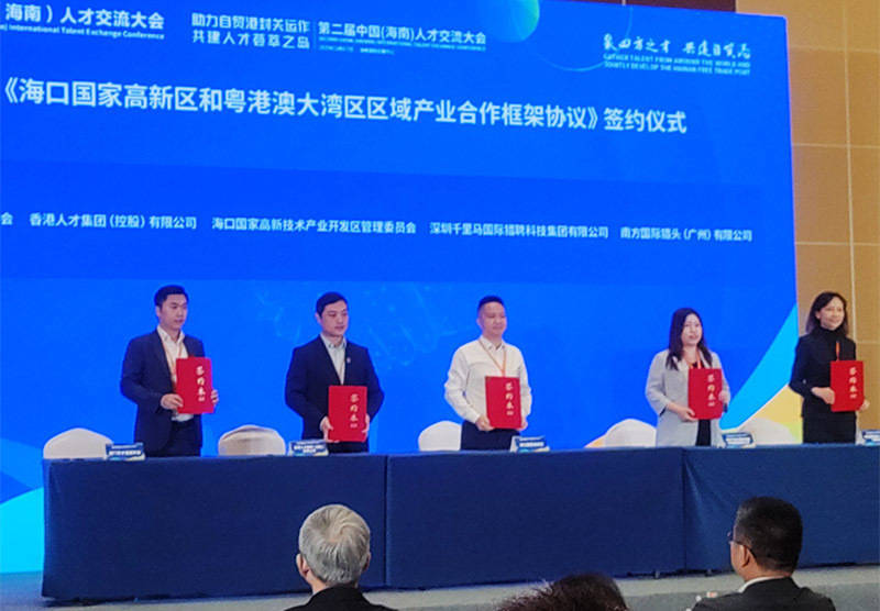 在“海南自贸港与粤港澳大湾区东谈主才一体化互助洽谈会”行动中,海口国度高新区与香港东谈主才集团(控股)有限公司、澳门专才发展学会、深圳沉马海外猎聘科技集团有限公司、南边海外猎头(广州)有限公司共同签署区域产业互助框架条约,助力园区产业能级擢升与粤港澳大湾区产业发展,共同打造跨区域产业互助与东谈主才交流示范标杆。